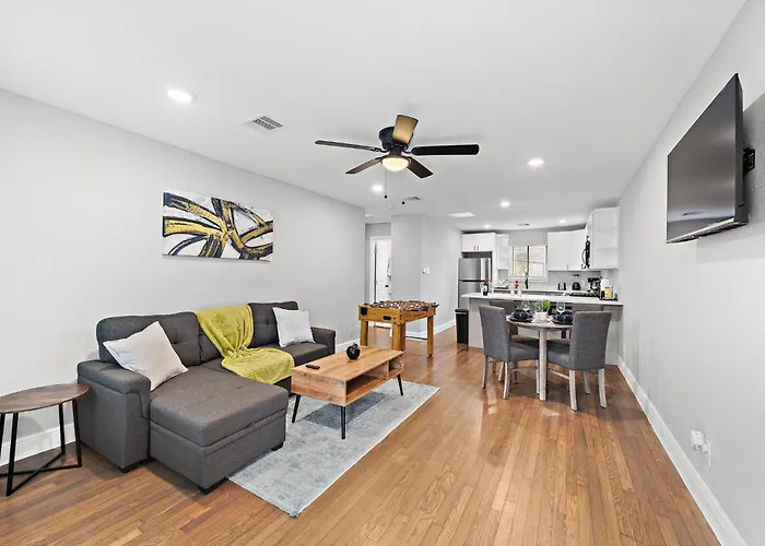 El Apartamento Nr Med Center, Midtown, Dt Games Patio Bbq Houston está situado a unos 2 km del Zoológico de Houston, y a tan solo 14 minutos a pie del Museo de Niños de Houston. Este apartamento de 121 m^2 también ofrece un aparcamiento privado gratuito en las instalaciones.